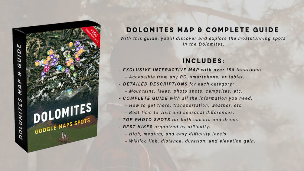 ¿Estás planeando un viaje a Dolomitas? ¡Entonces este mapa será tu mejor compañero! Haz clic abajo para acceder a un mapa exclusivo de Dolomitas con los mejores lugares para fotografiar y explorar.